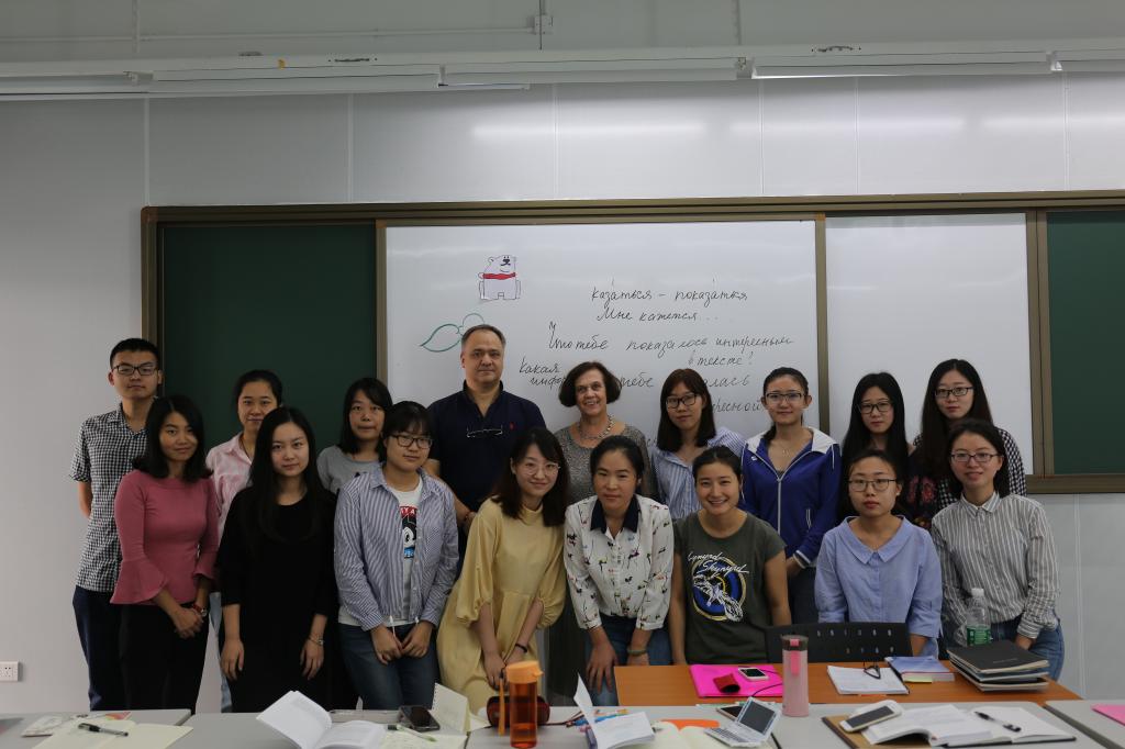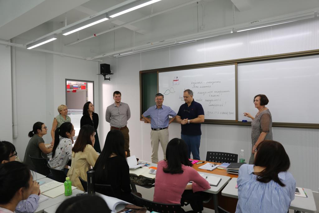 20171027日上午,上海合作組織實業家委員會執行秘書長謝爾蓋·卡納夫斯基先生蒞臨我校訪問,趙平校長、塔拉索夫副校長等進行了熱情接待。卡納夫斯基秘書長與我校俄語專業研究生見面,并與他們交流了未來實習、就業及發展機會等問題。