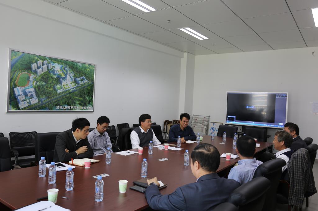 考察團沿途參觀了教室、會堂等設施,隨后來到會議室。黎局長介紹了考察團成員后,表明此行目的是為學習深圳市引進世界一流大學的經驗,以及學習深圳在辦高等教育方面的經驗??疾靾F就關心的我校從籌備到成立的整個建設過程,學校的師資力量、科研規劃、培養方案、學術要求、文憑發放等具體細節進行詳細詢問,張建中副校長及相關負責人進行一一解答。張建中副校長最后對于中山市籌備合作大學提供了一些建議。