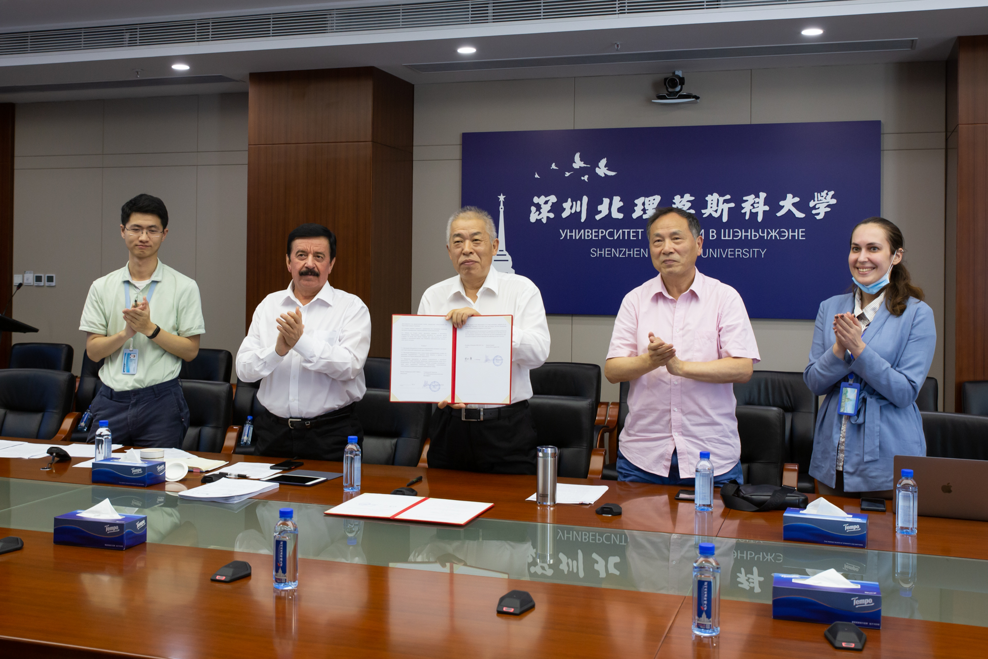 深圳北理莫斯科大學(xué)第一副校長(zhǎng)謝·米·沙赫賴、董事會(huì)主席顧問(wèn)楊心宇教授、國(guó)際文傳電訊社第一副總經(jīng)理阿·阿·卡爾什科夫、副總經(jīng)理塔·尼·羅曼琴科以及多位俄羅斯人口所研究員、國(guó)際文傳電訊社資深記者等雙方代表見(jiàn)證了合作備忘錄的簽署。