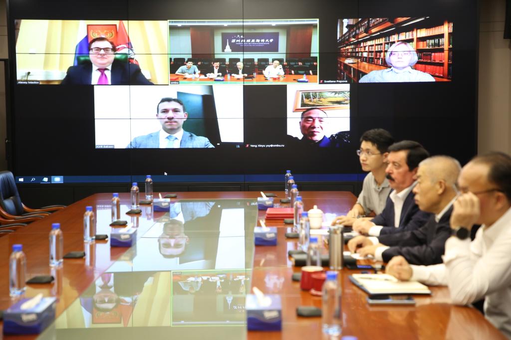 10月26日,深圳北理莫斯科大學與莫斯科國立羅蒙諾索夫大學亞非學院、俄羅斯科學院遠東所合作備忘錄簽署儀式以線上線下方式舉行。莫斯科國立羅蒙諾索夫大學亞非學院院長馬斯洛夫、俄羅斯科學院遠東所所長巴巴耶夫、深圳北理莫斯科大學校長李和章、黨委書記、副校長朱迪儉參加簽署儀式。深圳北理莫斯科大學第一副校長謝·米·沙赫賴主持儀式。