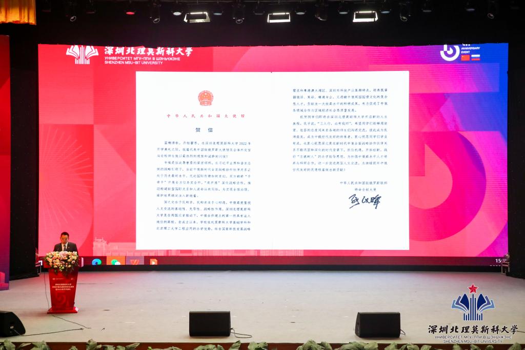 9月13日,深圳北理莫斯科大學(xué)慶祝中俄元首致賀辭五周年暨2022年開學(xué)典禮在禮堂舉行。深圳北理莫斯科大學(xué)校長李和章,黨委副書記、紀(jì)委書記陳超峰和2022級(jí)本科生、碩士研究生新生代表參加典禮。典禮由深圳北理莫斯科大學(xué)黨委書記、副校長朱迪儉主持。此次典禮采用線上線下相結(jié)合的方式舉行,中俄教職員工、新生家長和嘉賓于線上觀禮。
